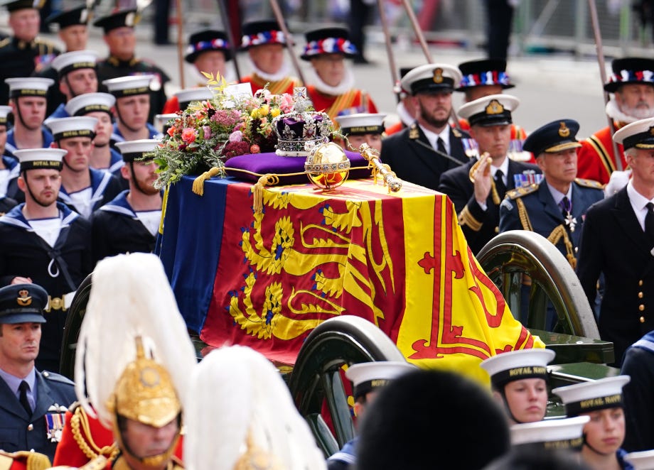 The formal procession of the Queen’s coffin from Buckingham Palace to Westminster Hall was accompanied by military bands playing the usual and expected funereal marches. Yet, that music pierced a level of silence pervasive not just across the parade route but the broader City of London—a place not precisely known for a lack of noise.